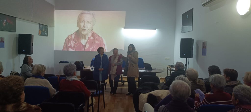 En esta sesión, la presidenta de Páginas Violeta, Teresa Alba, introdujo los contenidos del cortometraje y, tras la proyección, se abrió un debate sobre las discriminaciones y violencias que las mujeres mayores sufren, abordando cuestiones como el edadismo, la soledad no deseada, la invisibilidad y los estereotipos de género.