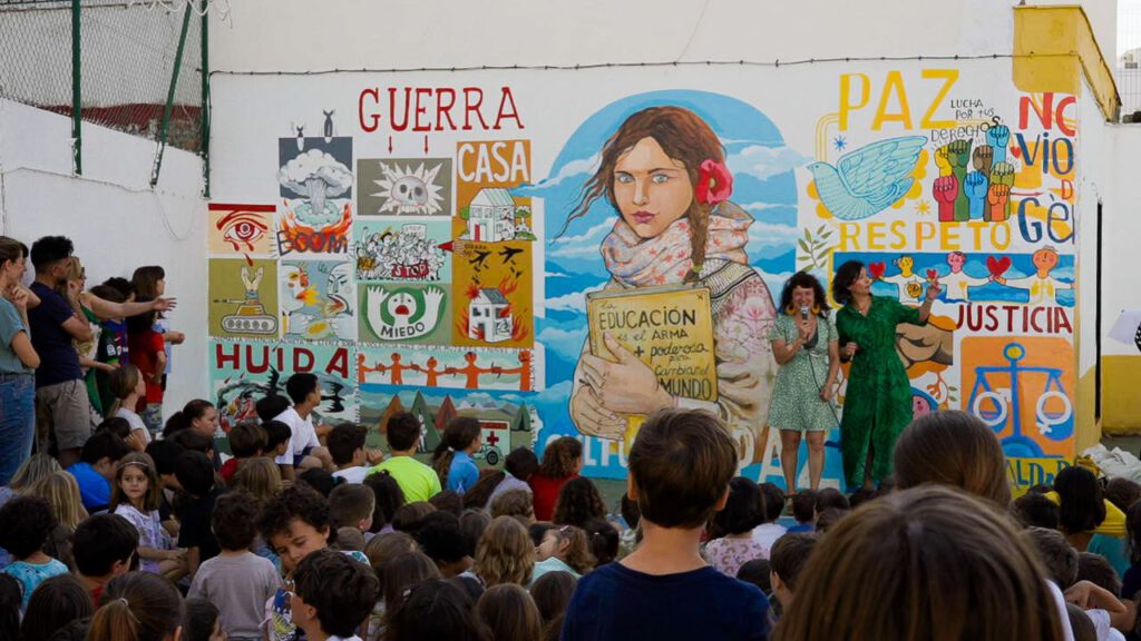 Este mural no solo embellece el espacio escolar, sino que lo transforma en una herramienta de sensibilización, memoria y conciencia social.